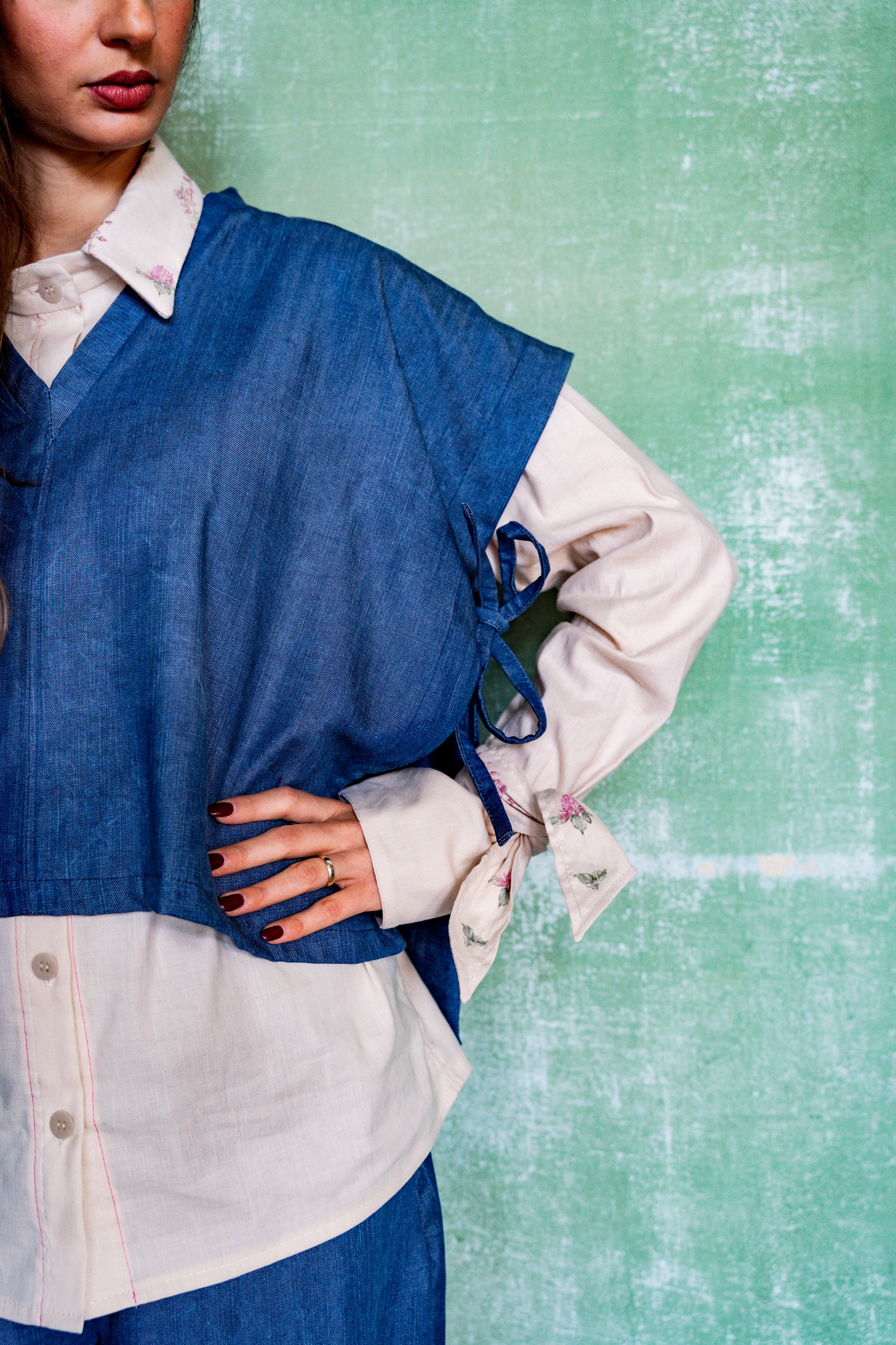 Vestibilità: taglio redingote, con il doppio fiocco sul retro come allacciatura. Senza maniche, per poterlo abbinare con i tuoi capi invernali preferiti.